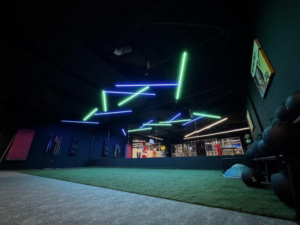 Jednym z największych wyzwań technicznych były dynamiczne elementy oświetleniowe w postaci tzw. „biegnących strzałek” w spektrum kolorów, które tworzą efekt ruchu i orientacji w przestrzeni, a także sala do ćwiczeń, gdzie intensywność i kolor oświetlenia automatycznie dostosowują się do tempa i stopnia trudności treningu. Pozwoliło to uzyskać silne wrażenia wizualne, które wspierają motywację ćwiczących i dopełniają ogólną atmosferę treningu.