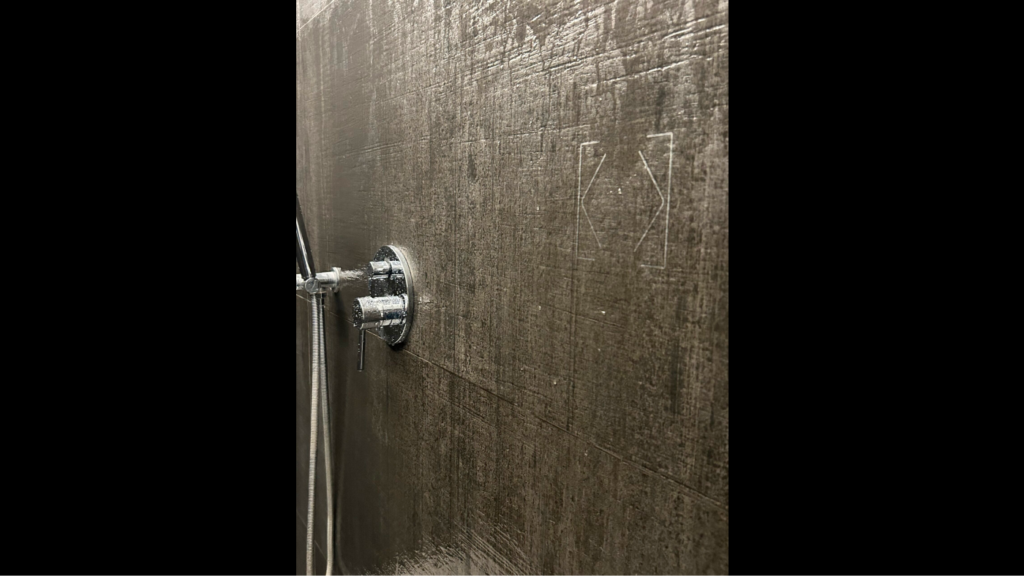 THIS CONTENT IS AUTOMATICALLY TRANSLATED BY GOOGLE TRANSLATE.Dotykowa powierzchnia umieszczona za płytkami pod prysznicem
