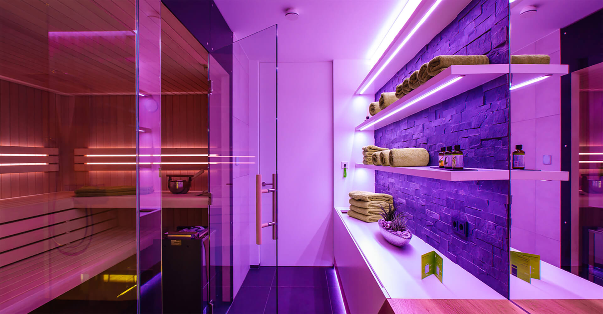 Kombinácia sauny, osvetlenia a vykurovania v celej miestnosti