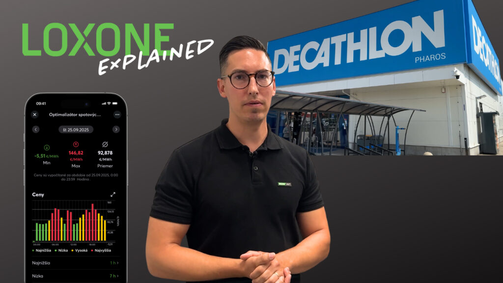 V kontexte spotových cien zohráva Loxone kľúčovú úlohu – spája údaje z trhu s reálnou prevádzkou budovy. Vie autonómne rozhodovať, kedy spotrebovať energiu, kedy obmedziť odber a kedy uprednostniť vlastnú výrobu alebo akumuláciu.