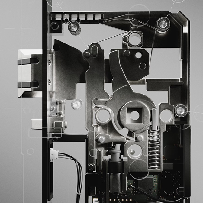 Zabudovaný priamo vo dverách, bez zásahu do kľučky alebo kovania.